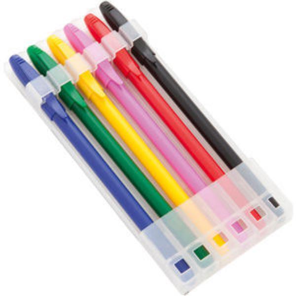 Set of 6 multicoloured pens with matching lids.