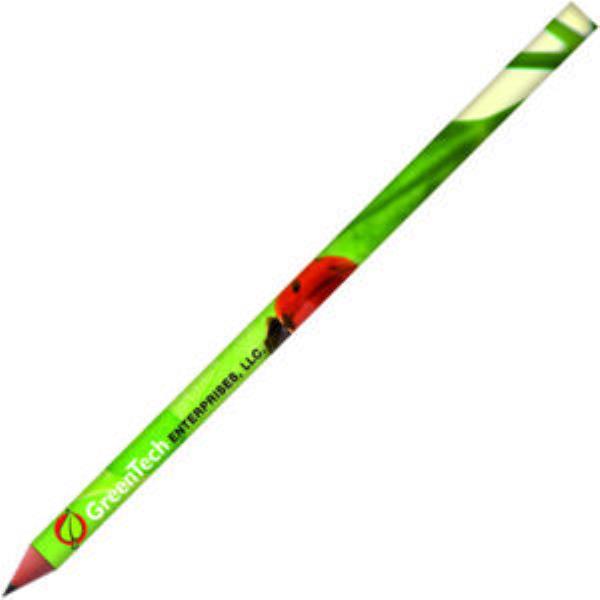 360 photo quality full colour imprint wood-free pencil in synthetic resin, material made with 54% recycled material, that will not splinter in the event of breaking. Resistant HB grade lead.