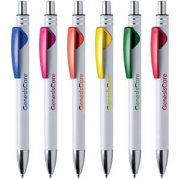 Retractable aluminium ballpoint pen specially designed for laser engraving. This pen includes a special coating for your customer's branding to be engraved showing a matching colour to the metallic clip. Suitable for use with tablets and mobile phones. A modern twist on everyone's favourite promotional item. Supplied with blue ink.