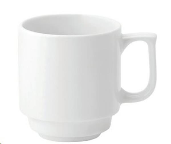 Stacking Mug Vitrified Porcelain for strength and durability Diswasher safe Capacity: 10oz Size: 108 x 80 x 90mm Colour: White Pack of 6
