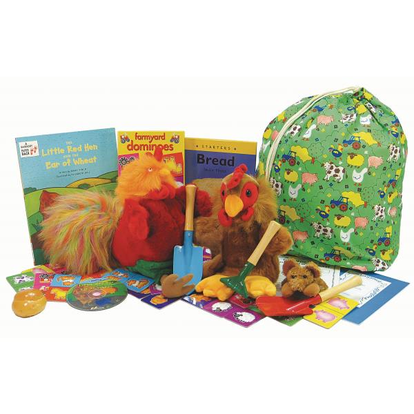 Based on the classic tale of the Little Red Hen who asks all the farmyard animals to help her sow her corn, every parent can play along at home to this familiar story. The Storysack includes the story on CD, a storybook, a hand puppet of the Little Red Hen and the cockerel, a mouse finger puppet, a game, a fact book on bread, a mini gardening kit and a Teachers Guide on CD-ROM.