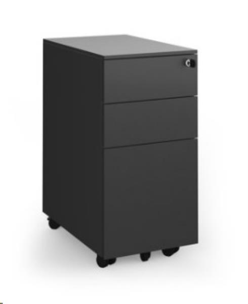 Steel 3 drawer narrow mobile pedestal - black Height Width Depth 600 300 500