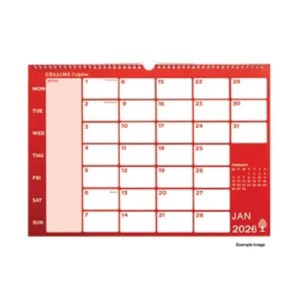 Month per page with writing space for each day Months in alternate colours Wirebound at the top with a hook for wall hanging Includes a notes section for additional planning Size: A3