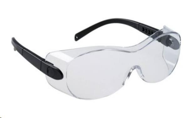 Portwest Over-Spectacles Single panoramic lens glasses Lightweight wrap-around design Excellent side protection Inclinable side arms for optimum fit Extendable side arms for secure and comfortable fit Anti-scratch coating for added durability