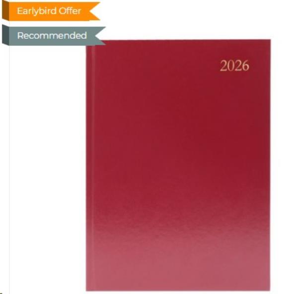 5 Star Desk Diary Day Per Page A5 Burgundy 2026 KFA51BG26
